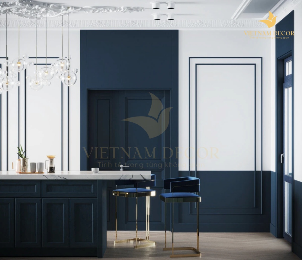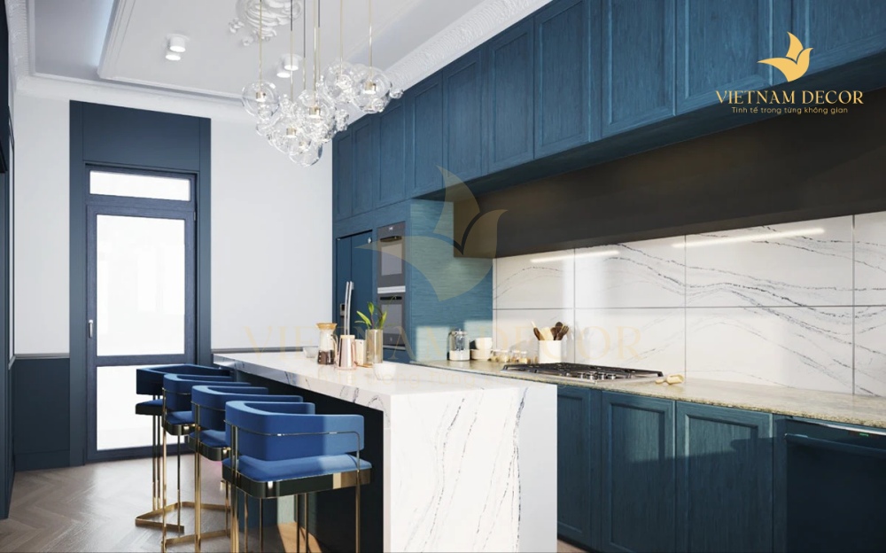• Thiết kế: Tủ bếp chữ I theo phong cách classic pha hiện đại