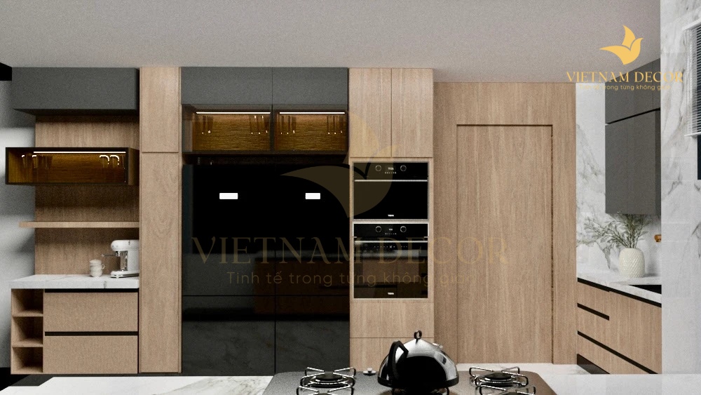 Tủ bếp gỗ công nghiệp chữ I hiện đại – TBVND0021