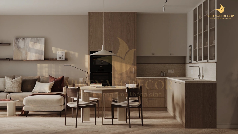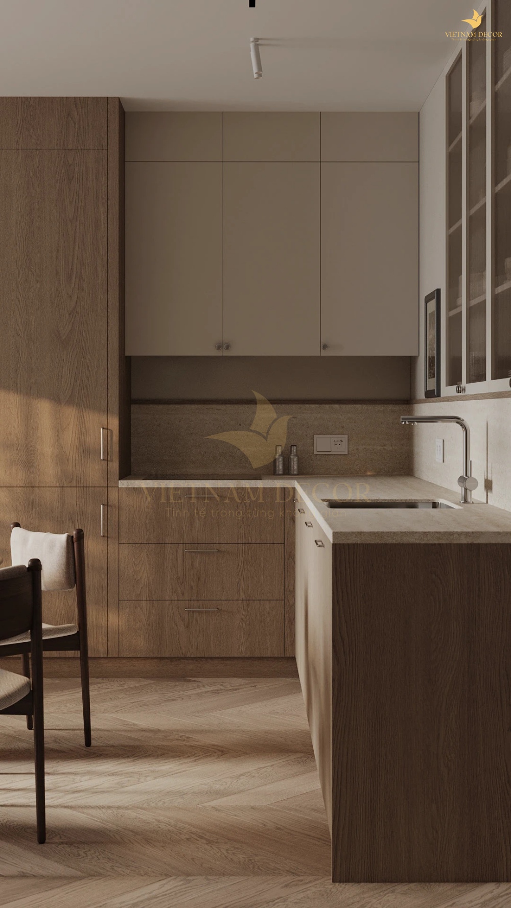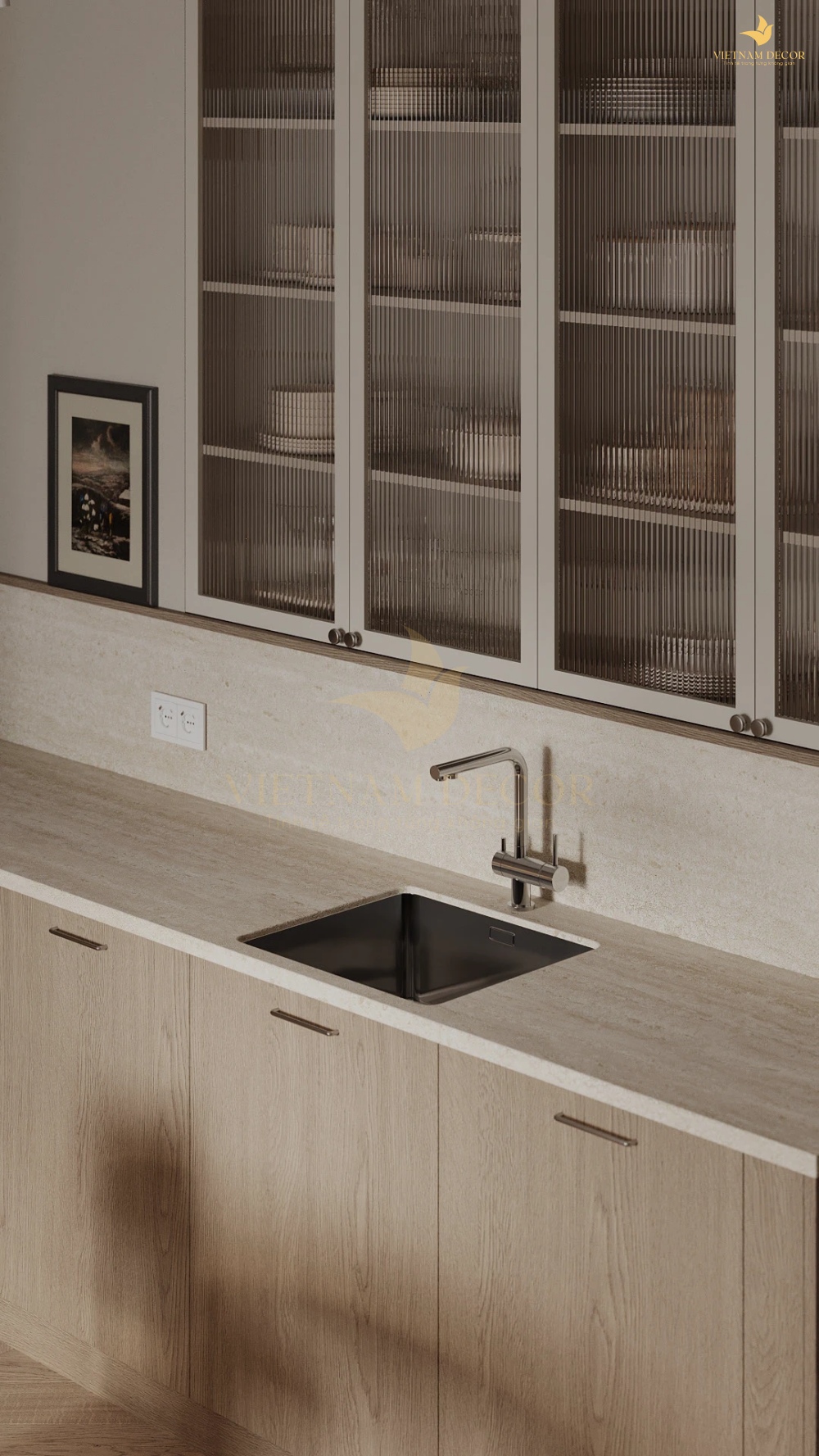 • Thiết kế: Tủ bếp chữ L hiện đại